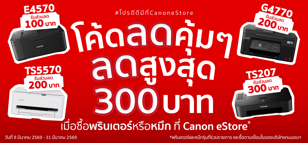ระยะเวลาโปรโมชั่น : 9 – 31 มีนาคม 2569Promotion โปรโมชั่นหมึกและเครื่องพิมพ์แคนนอน