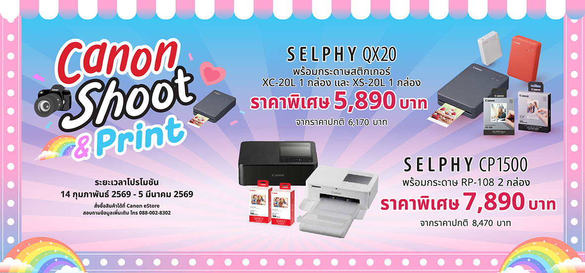 - SELPHY CP1500 (Black) + RP108 (2P) ราคาพิเศษ 7,890 บาท คลิกเพื่อเลือกซื้อสินค้า